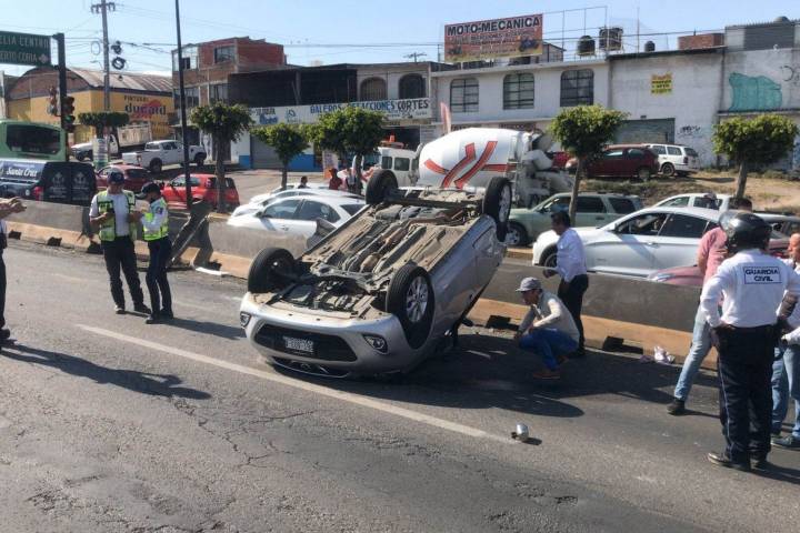 Una persona quedó lesionada tras el choque entre dos vehículos y uno de ellos terminó volcado sobre la avenida Madero Oriente, en Morelia, indicaron fuentes allegadas al tema.