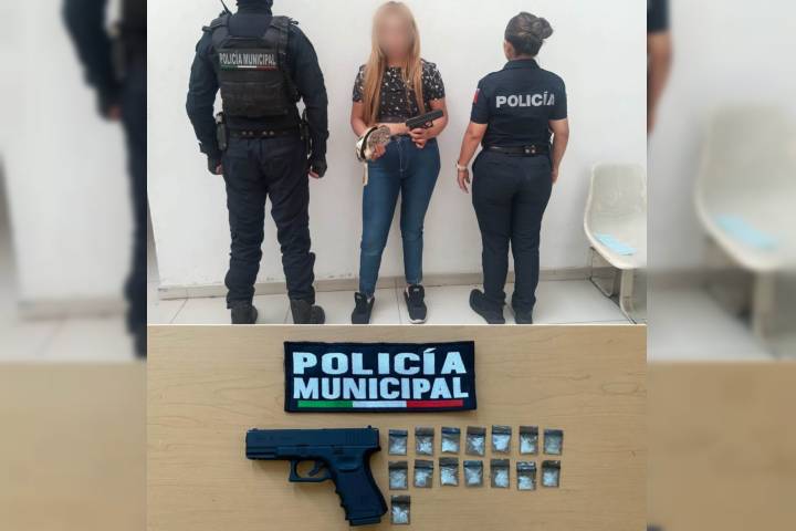 En una rápida acción elementos de la Dirección de Seguridad Pública Municipal de Zamora detuvieron a una mujer relacionada en el asalto a una negocio de la colonia Jardinadas, a la indicada le fue asegurada una réplica de arma de fuego, así como varios envoltorios con droga, un cómplice la abandonó y logró darse a la fuga.