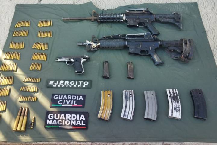 NOTICIAS 23/01/2023SSP, Sedena y GN decomisan armas, cartuchos y cargadores; en Aguililla Como resultado de las labores de coordinación interinstitucional, los efectivos de las Secretarías de Seguridad Pública (SSP) y de la Defensa Nacional (Sedena), así como de la Guardia Nacional (GN); decomisaron un arsenal con armas, cargadores y cartuchos en el municipio de Aguililla.