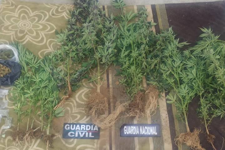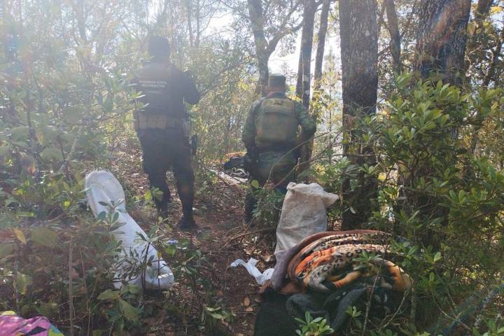 Agentes de la Guardia Civil y soldados del Ejército Mexicano, aseguraron y destruyeron tres campamentos clandestinos y aseguraron un vehículo que presentaba impactos de bala.