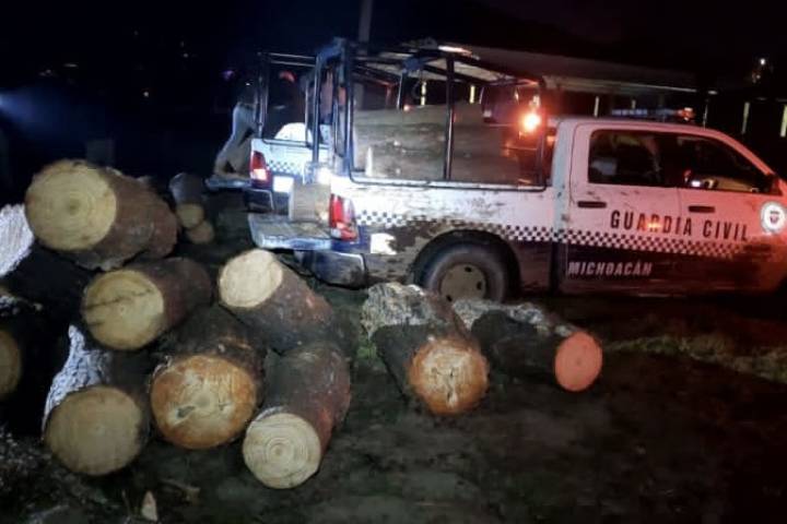 NOTICIAS 04/01/2023En Ocampo, GC asegura madera aparentemente ilegalLabores operativas para la preservación de los recursos naturales en el estado de Michoacán, permitieron los agentes de la Secretaría de Seguridad Pública (SSP), el aseguramiento de varios rollos de madera, presuntamente de tala ilegal.