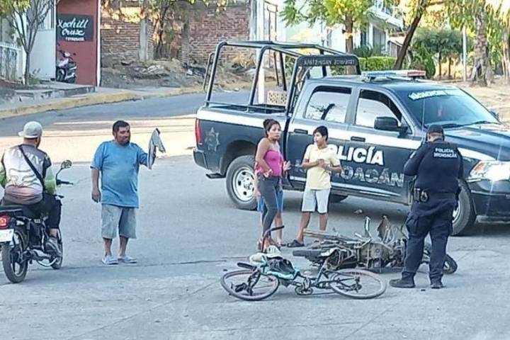 Un joven ciclista resultó lesionado al estrellarse contra una motocicleta en el municipio de Apatzingán.