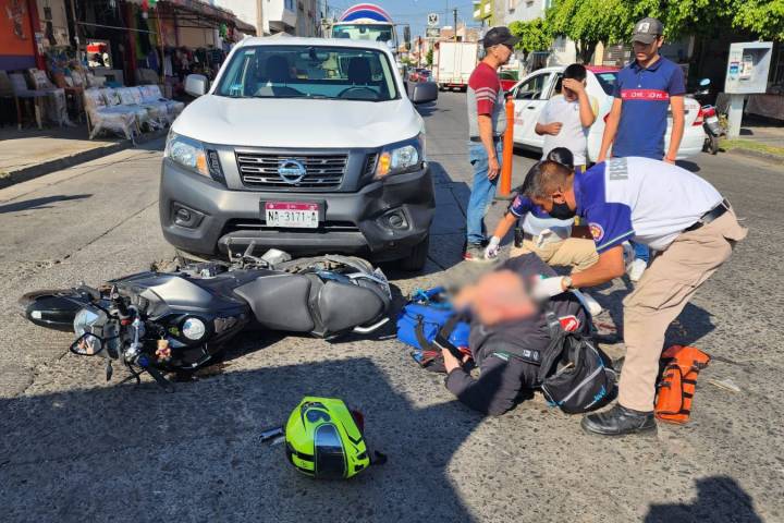 El aparatoso accidente ocurrió en el cruce de las Avenidas del Bosque y Virrey de Mendoza, en la colonia Las Fuentes, de la ciudad de Zamora, hasta donde llegaron paramédicos de Rescate y Salvamento para auxiliar al lesionado.