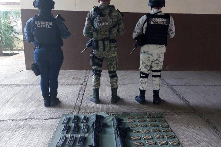 NOTICIAS 26/10/2022Guardia Civil asegura en Apatzingán 2 fusiles, un kilo de metanfetamina y 267 municionesEn una rápida acción de apoyo a personal de la Secretaría de la Defensa Nacional (Sedena), quien sufrió una agresión por civiles armados, personal operativo de la Secretaría de Seguridad Pública (SSP), logró el aseguramiento de una persona del sexo masculino, dos armas de fuego largas, 267 cartuchos y 10 cargadores útiles, droga, así como de dos vehículos que contaban con reporte de robo.