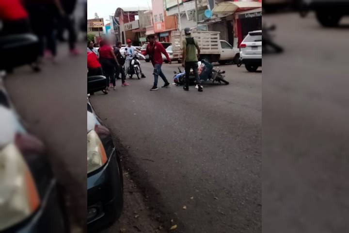 Un choque entre dos motocicletas dejó como resultado una mujer herida y daños materiales en la ciudad de Apatzingán.