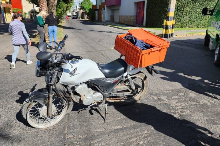 Un repartidor de tortas "El Gordo" resultó con posible fractura de clavícula y otros golpes al impactar su motocicleta contra una camioneta de reciente modelo, cuya conductora esperó al arribo de las autoridades policíacas.
