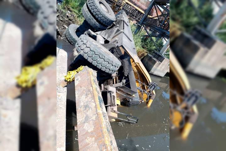 NOTICIAS 22/09/2022Conductor de volteo se va con su unidad a un canal en Lázaro Cárdenas
