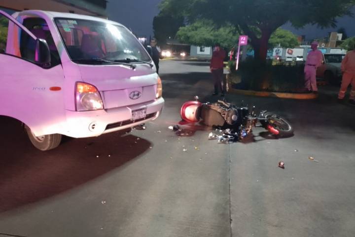 Una persona, que conducía una motocicleta, resultó lesionada, durante un accidente, en la que participó una camioneta color blanco, en el Boulevard Industrial, frente a la plaza comercial Ágora.