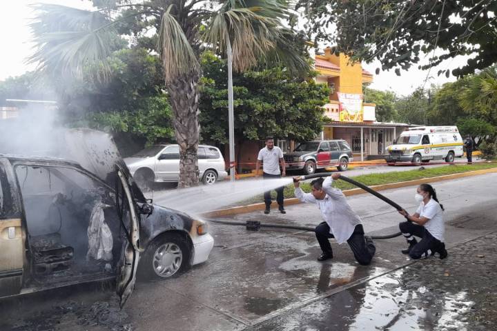 En dicho sitio circulaba una camioneta, blanca, cuando su cuando repentinamente comenzó a arder, desde su interior.