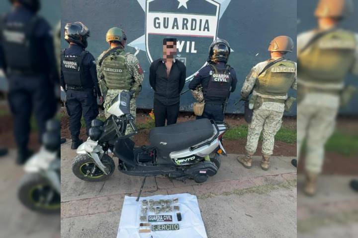 Al patrullar sobre una brecha de terracería en la colonia Villas del Oriente, elementos de la Guardia Civil y del Ejército Mexicano localizaron al ahora detenido de 26 años a bordo de una mo... Ver más...