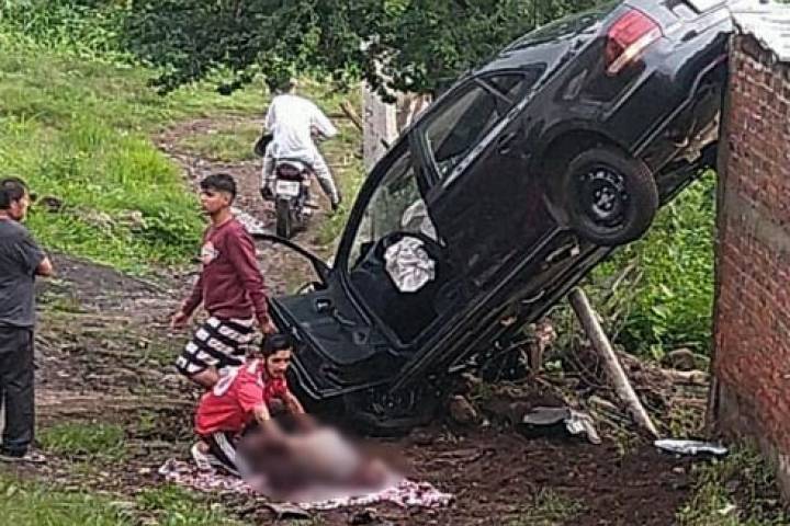 Una pareja de esposos de milagro sobrevivió, pero resultó con lesiones de consideración al sufrir un accidente en su automóvil, el cual término recargado en la pared de una vivienda.