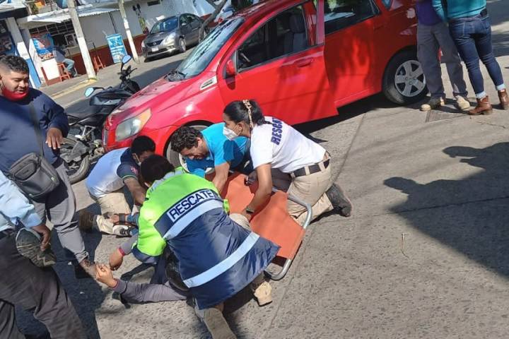 Un joven, que iba a bordo de una motocicleta, sufrió lesiones de consideración, luego de que, en una esquina, se impactó contra un automóvil, y salió disparado; personal del Cuerpo de Rescate, lo auxilió y trasladó a un hospital particular.