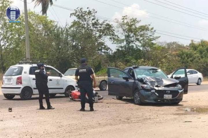 Un choque entre un automóvil y una motocicleta, dejó como saldo al conductor de la segunda unidad en mención lesionado, sobre la carretera federal Lázaro Cárdenas - La Mira en la tenencia de Buenos Aires en Lázaro Cárdenas.