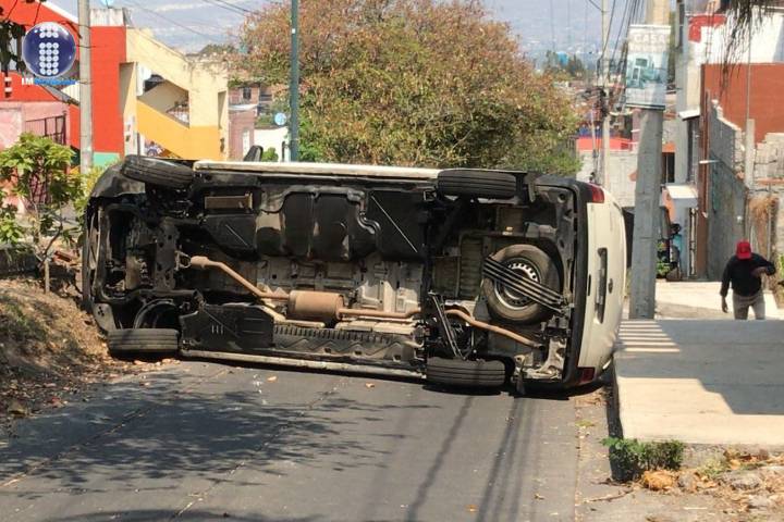 Una camioneta volcó tras quedarse sin frenos cuando circulaba en una de las vialidades de la colonia Piedra Lisa, al sur de Morelia. Por fortuna el conductor resultó ileso, comentaron autoridades policiales y de rescate.