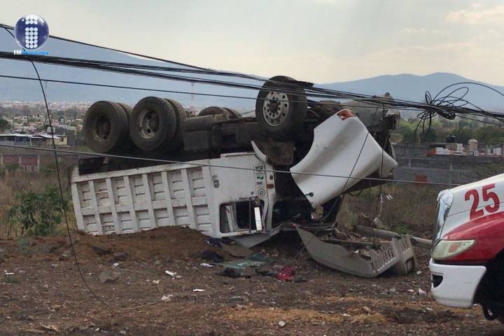 Un camión de carga se accidentó y terminó volcado a la orilla de la carretera Morelia-Quiroga. El ocupante de dicha unidad resultó lesionado, informaron contactos policiales y de rescate.