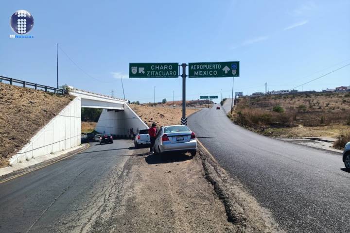 Un automóvil quedó totalmente destrozado al impactarse contra una barrera de contención en la carretera Morelia-Charo.
