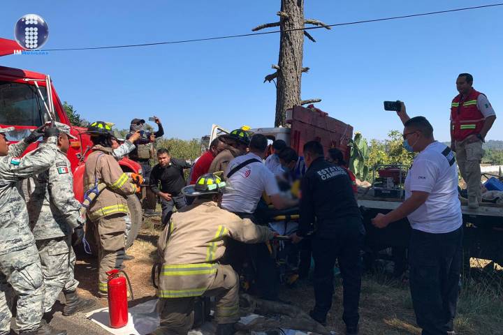 Saldo de 10 peregrinos lesionados fue el que dejó el accidente de un camión tipo "rabón", que circulaba sobre la carretera Villa Madero - Acuitzio del Canje, el conductor presuntamente perdió el control de su unidad y se impactó contra un árbol, lo que ocasionó que las personas que iban en la zona de carga salieran disparadas.