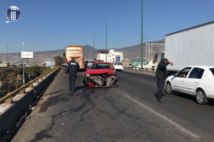 Una mujer resultó levemente lesionada tras el choque entre un automóvil y un autobús de pasajeros, el cual ocurrió sobre el Periférico Paseo de la República, al norte de Morelia.