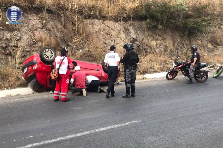 Un automóvil se volcó en la salida a Mil Cumbres, situado en la zona oriente de la ciudad.