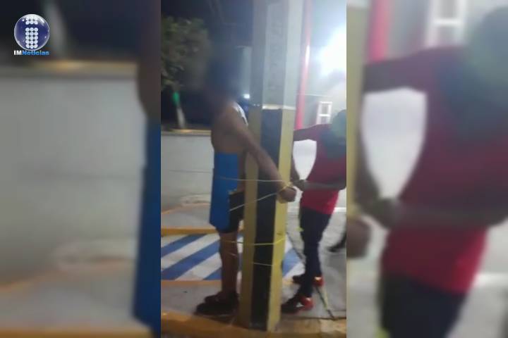 En esta ocasión fue en la colonia Zapata, donde se halló a la persona amarrada de un poste en un Oxxo.