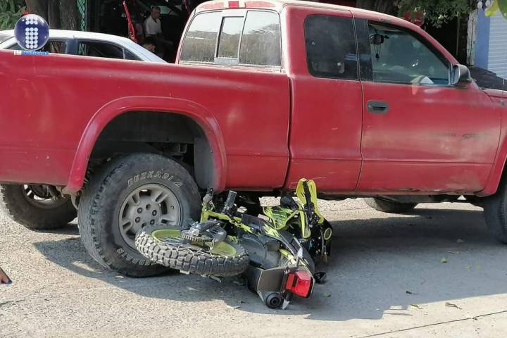 El afectado conducía una motocicleta color verde tipo DM-200, misma que quedó dañada tras estrellarse contra la parte trasera de la camioneta.