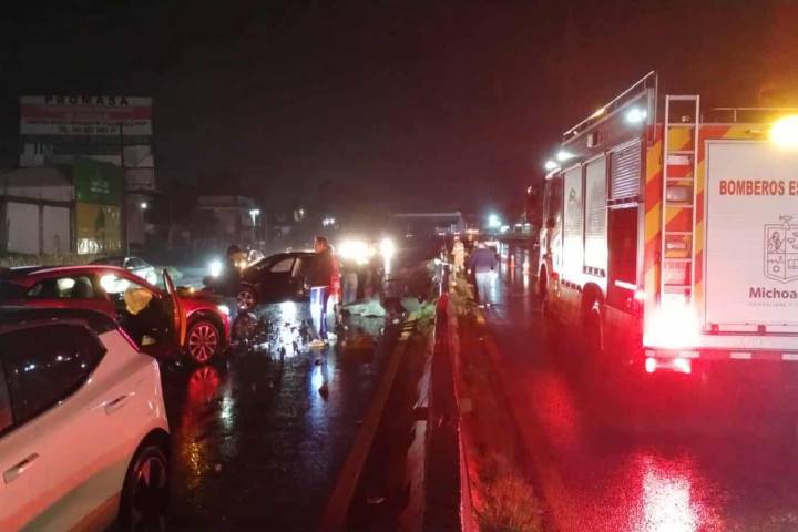 Un choque múltiple se registró durante la noche de este domingo sobre la carretera Morelia-Pátzcuaro, percance que dejó tres personas levemente lastimadas y daños materiales, informaron autoridades policiales y de rescate.
