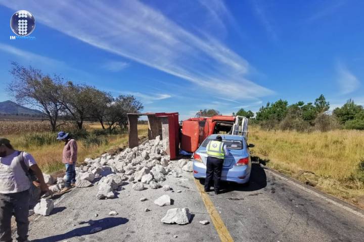 NOTICIAS 04/11/2021Se accidentan volteo y auto compacto Un volteo y automóvil compacto se accidentaron en la carretera Atlacomulco-Morelia, por lo que quedó bloqueado temporalmente el tramo Maravatío-Morelia.