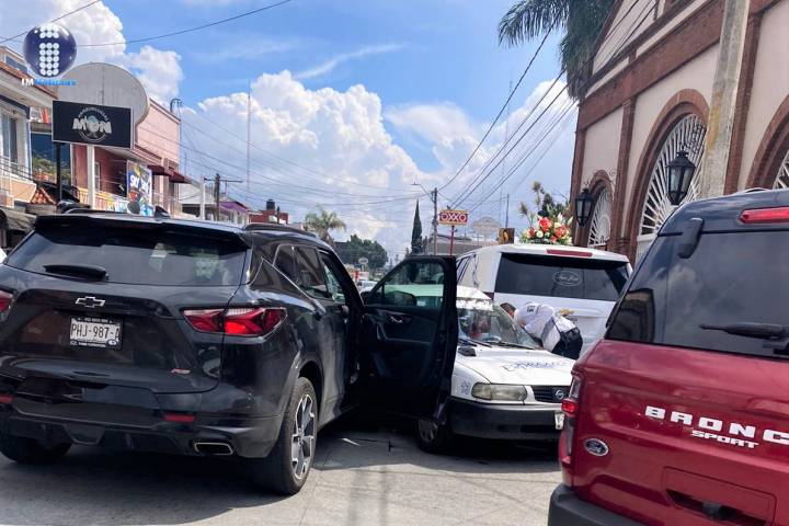 El conductor de un auto de alquiler, que aparentemente intentó ganarle el paso a una camioneta no lo logró, el taxi fue impactado y proyectado contra una carroza estacionada frente al templo de Guadalupe.