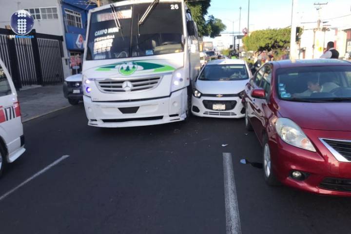 Tres vehículos, entre ellos un camión del transporte público urbano, protagonizaron un choque sobre la avenida Madero Poniente de la ciudad de Morelia. Por fortuna no hubo lesionados, mencionaron las autoridades policiales.