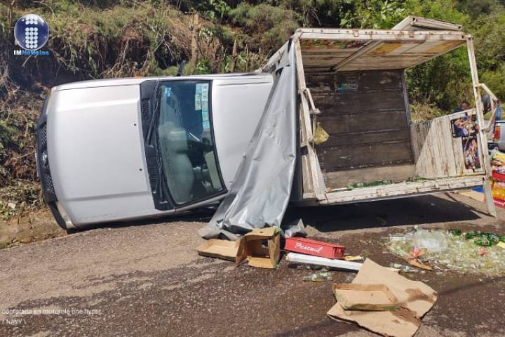 Una camioneta se volcó sobre la carretera Zitácuaro-Morelia, situación que generó la movilización del personal del Heroico Cuerpo de Bomberos y Protección Civil Municipal, aunque por fortuna no se reportaron personas lesionadas.