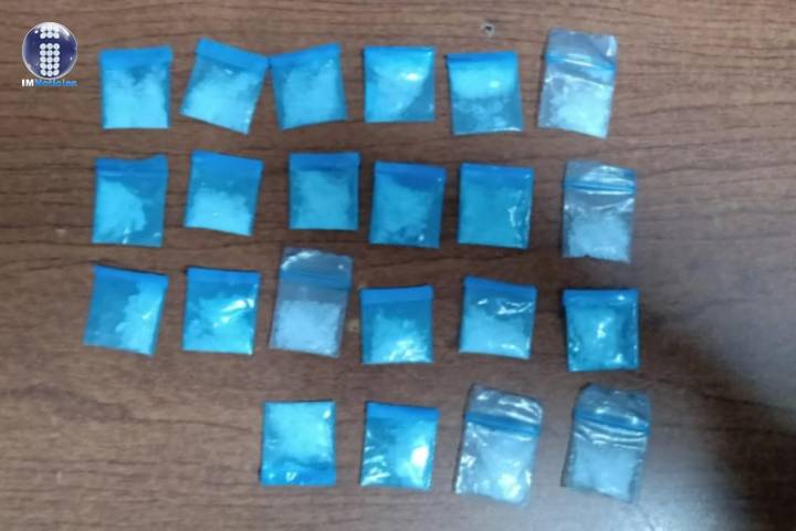 NOTICIAS 28/07/2021Asegura SSP a cuatro en posesión de 100 envoltorios con metanfetamina Durante labores operativas, elementos de la Secretaría de Seguridad Pública (SSP), detuvieron a una persona del sexo femenino y tres más del sexo masculino en posesión de 100 envoltorios que contenían sustancia granulosa con las características de la metanfetamina; hecho registrado en este municipio.