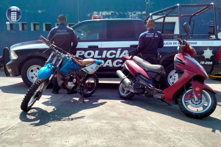Personal de la Policía Michoacán efectuaba trabajos operativos en la calle Estado de Nuevo León, cuando ubicó dos vehículos de las marcas Italika y Vento sin placas de circulación, procediendo a inspeccionarlos.
