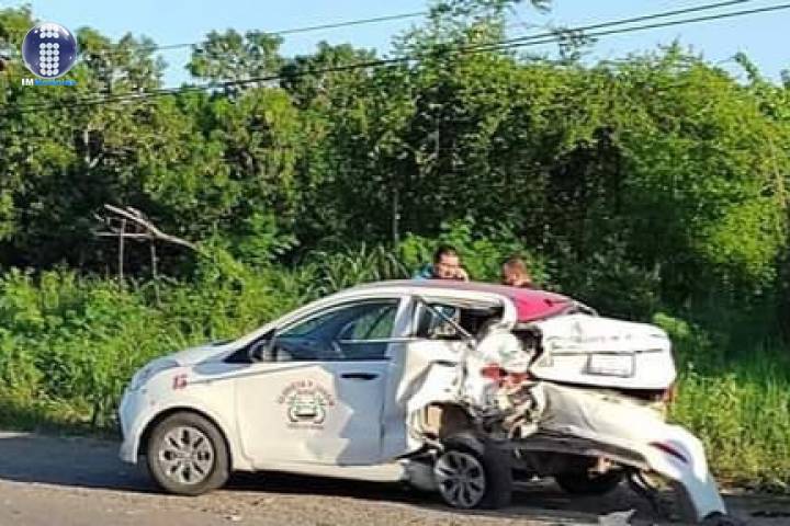 El siniestro tuvo lugar en la tenencia de Buenos Aires cerca de la puerta de acceso al fraccionamiento Puerto Nuevo donde un vehículo marca Chevrolet tipo Aveo colisionó contra una unidad de Radio Taxi.