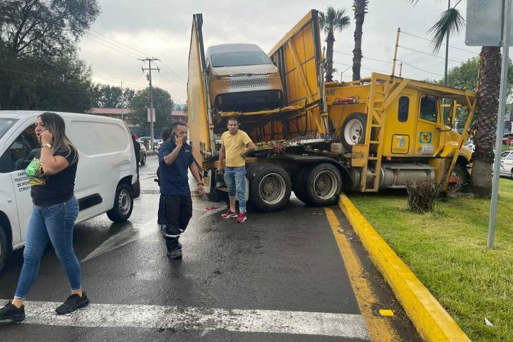 Un tráiler nodriza, el cual aparentemente circulaba a una velocidad mayor de la permitida, derrapó sobre el asfalto mojado por la lluvia, derrapó, chocó contra la retaguardia de una camioneta y acabó estrellado contra una palmera del camellón central del Periférico Paseo de la República, Sector Independencia, hecho que sólo dejó daños materiales, informaron autoridades policiales.