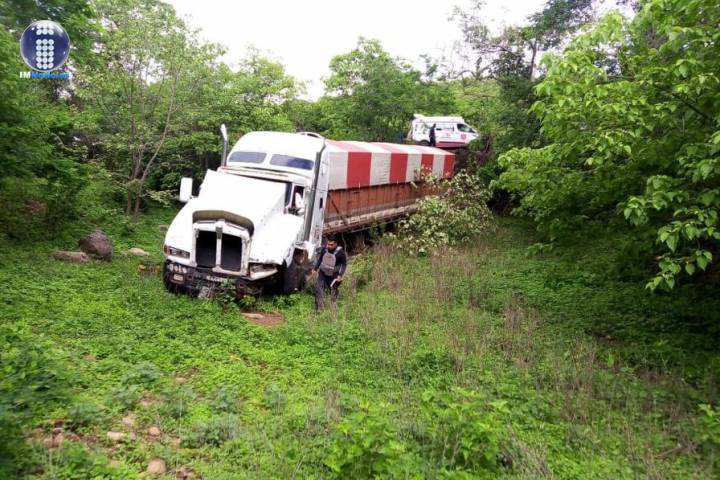 De acuerdo con datos obtenidos por este medio se reportó que un tráiler se salió de una curva se volcó en la carretera y su conductor de nombre Eleno G, quedó atrapado en su interior.
