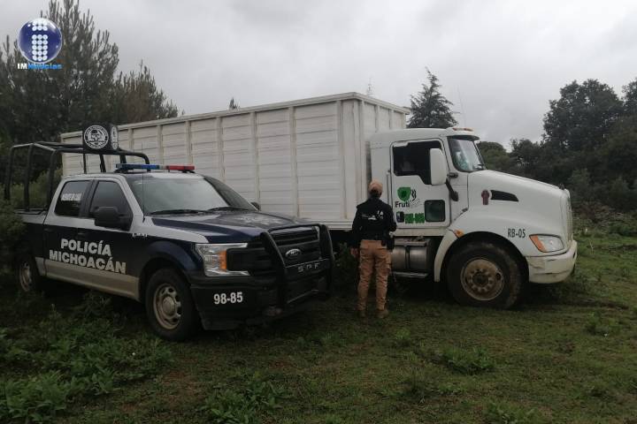 La acción operativa se registró sobre el tramo que conduce hacia el rastro municipal, sitio donde los oficiales de la Policía Michoacán, localizaron el vehículo de la marca Kenwort, en aparente estado de abandono.