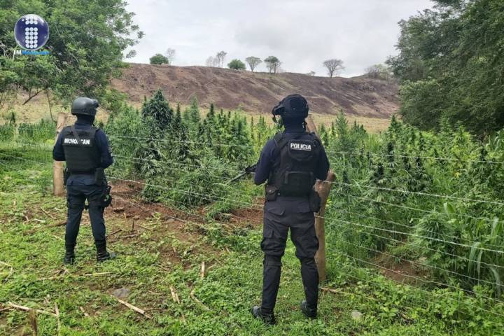 Los agentes de la Policía Michoacán localizaron un predio en las inmediaciones de la localidad de Arroyo de las Vacas, en el cual estaba dicha plantación, por lo que se implementó un dispositivo de vi... Ver más...