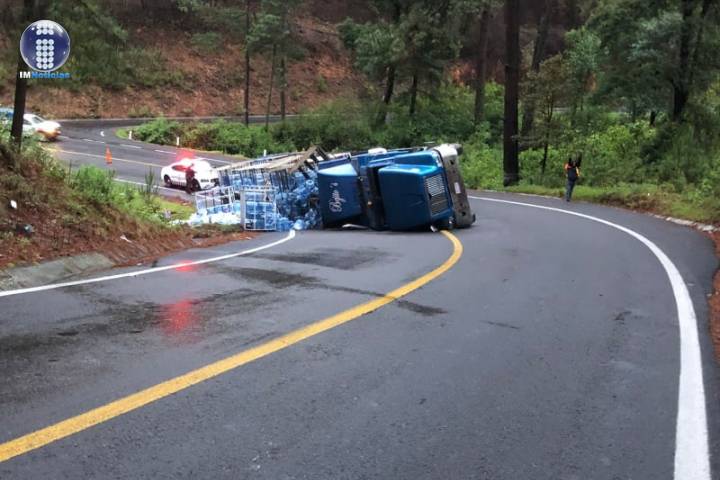 Un tráiler que llevaba un cargamento de garrafones de agua volcó en la carrera Tepalcatepec-Quiroga en el ramal Opopeo-Tacámbaro, a donde llegaron unos paramédicos locales y el personal del Batallón de Seguridad en Carreteras e Instalaciones de la Guardia Nacional (GN) para atender la emergencia, según los datos obtenidos por este medio de comunicación.