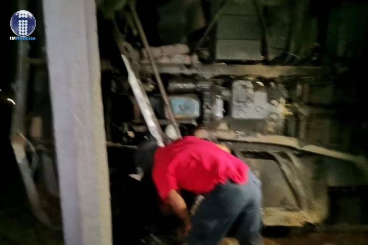 Los socorristas que llegaron al lugar confirmaron el hallazgo de un trailer Kenworth volcado del lado lateral derecho.