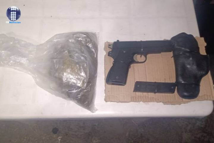 En labores de disuasión del delito, elementos de la Secretaría de Seguridad Pública (SSP), efectuaron la detención de una persona del sexo masculino, quien se encontraba en posesión de hierba color verde seca con las características de la marihuana así como una réplica de arma de fuego.