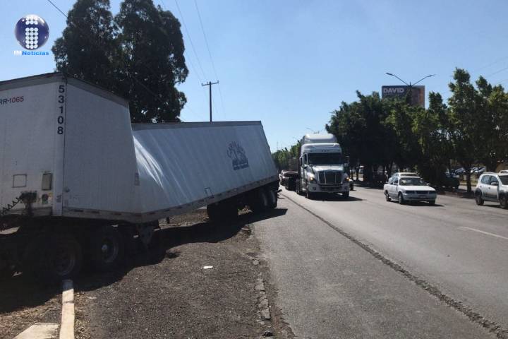 El remolque de un tráiler se dobló a la mitad cuando dicha unidad realizó una maniobra sobre el Periférico Paseo de la República para intentar incorporarse a otra vialidad, según se supo en la labor noticiosa.