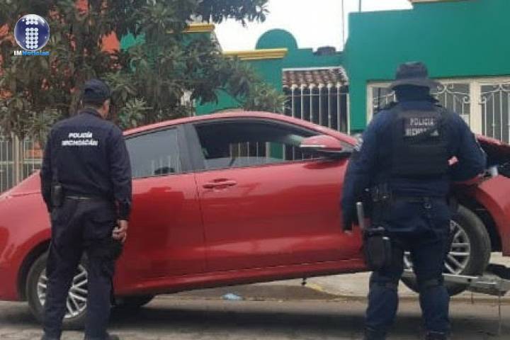 Derivado de un dispositivo de búsqueda, agentes de la Policía Michoacán ubicaron en la calle Paseo del Roble de la colonia Prados Verdes la unidad de la marca Chrysler.