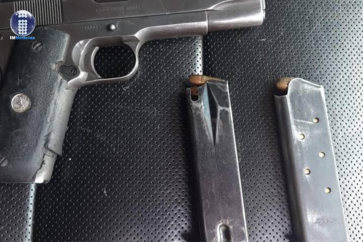 El aseguramiento de los implicados se efectuó en la calle Marcos W. Méndez, luego de que los agentes de la Policía Michoacán localizaran entre sus pertenencias el arma de fuego calibre .45 mm., dos cargadores y los ... Ver más...