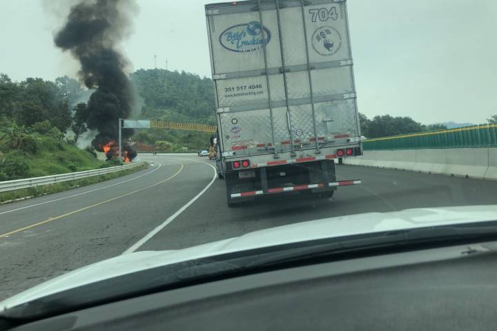 Primeramente, el kilómetro 224 del tramo carretero Las Cañas - Feliciano, en territorio del municipio de Arteaga, dos tráileres articulados colisionaron., sin que se reportaran heridos graves.