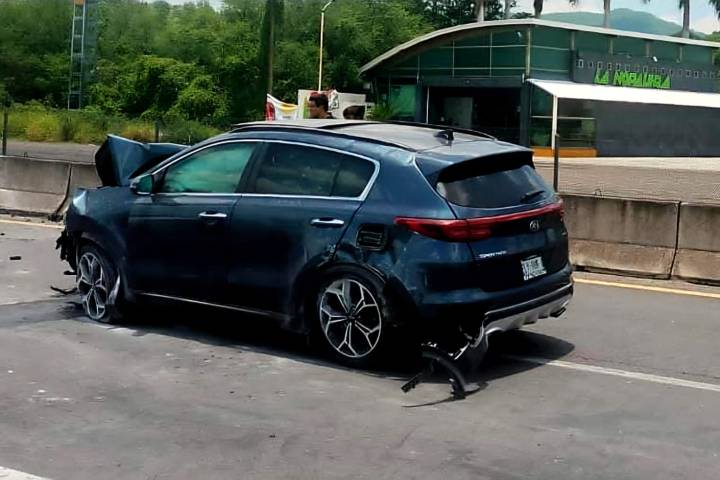 El percance se registró cuando una camioneta Kia Sportage de color azul marino, con placas PLY-909-A, colisionó contra la parte trasera de una Nissan Frontier gris, con matrícula MU-4019-T.