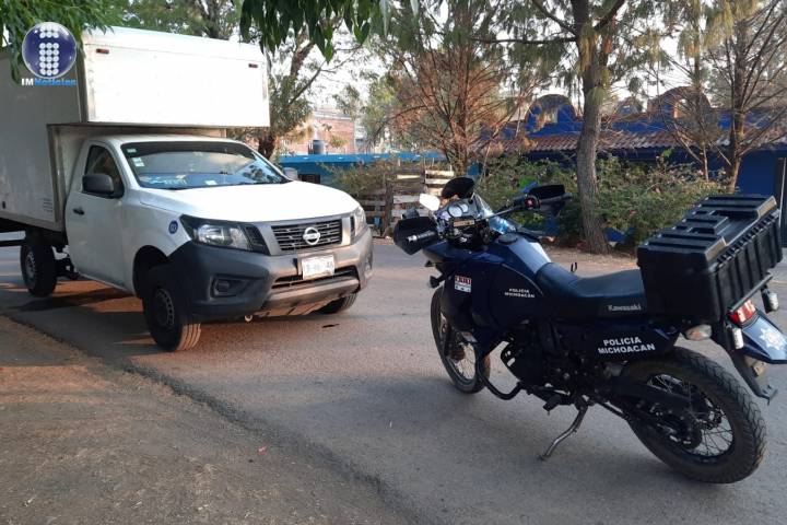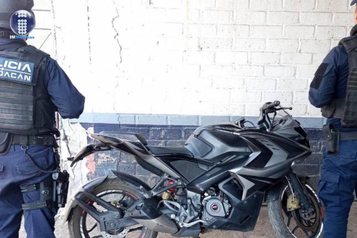 La acción se registró en la calle Cuauhtémoc de la colonia Centro, donde personal de la Policía Michoacán ubicó una motocicleta de la marca Bajaj en aparente estado de abandono, por lo que procedió a inspeccionarla.