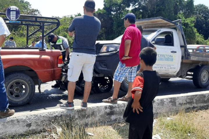 NOTICIAS 27/04/2021Carambola vehicular deja a motociclista lesionado entre dos camionetasUn motociclista resultó lesionado al quedar entre dos camionetas durante una carambola vehicular en el municipio de Lázaro Cárdenas.
