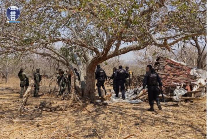 En acción coordinada, personal de la Policía Michoacán en conjunto con el Ejército Mexicano, localizaron en la comunidad de Atacheo, un campamento, en el cual fueron encontradas las armas y lo citado.