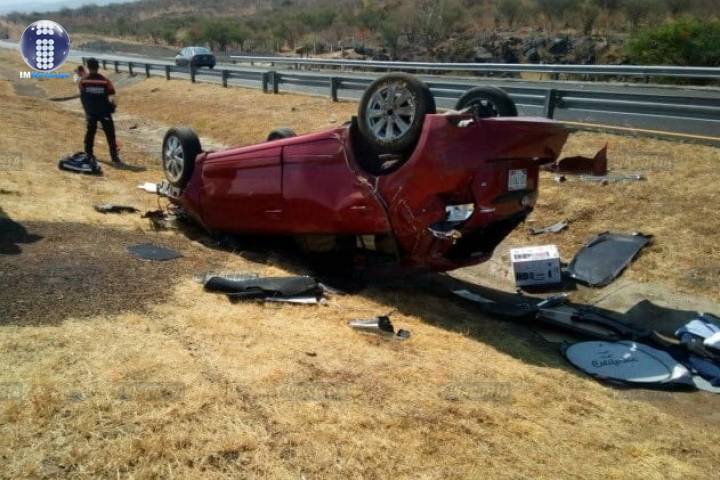 Un automóvil volcó en la Autopista de Occidente y terminó destrozado sin que por fortuna hubiera personas fallecidas, el percance vial se registró este martes en el tramo carretero Maravatío-Zapotlanejo, a la altura de este municipio de Churintzio, a donde se trasladaron las autoridades policiacas y de rescate.