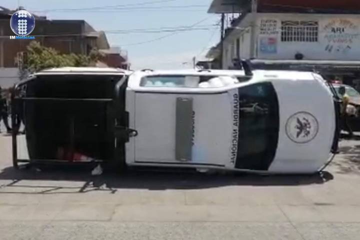 Un choque entre un taxi de la Organización Monarca y una patrulla de la Guardia Nacional (GN) dejó como saldo tres oficiales lesionados, así como dos civiles; el suceso se registró en la colonia Valle Dorado, ubicada en esta ciudad de Uruapan, de acuerdo con la información obtenida en la labor periodística.